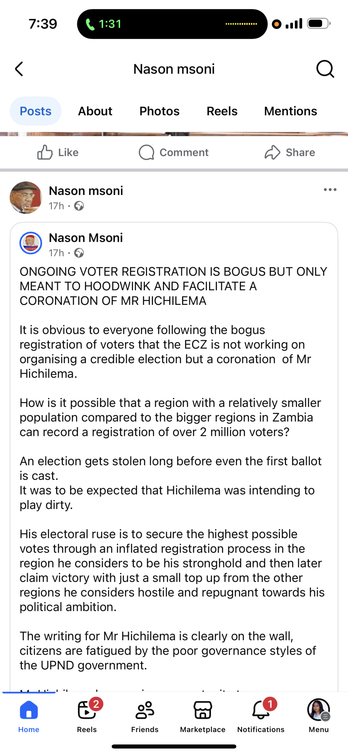 “It is obvious to everyone following the bogus registration of voters that the ECZ is not working on organising a credible election but a coronation of President Hakainde Hichilema.”