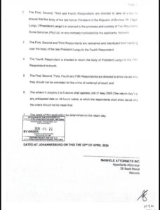Editor's Pick Breaking! Court papers show Lungu’s remains to be returned to mortuary of family’s choice in South Africa By ZambiaMonitor Contributor4 hours ago0