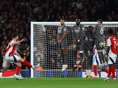 Declan Rice scored two stunning free kicks as Arsenal thrashed defending champions Real Madrid 3-0 in the first leg of their UEFA Champions ...