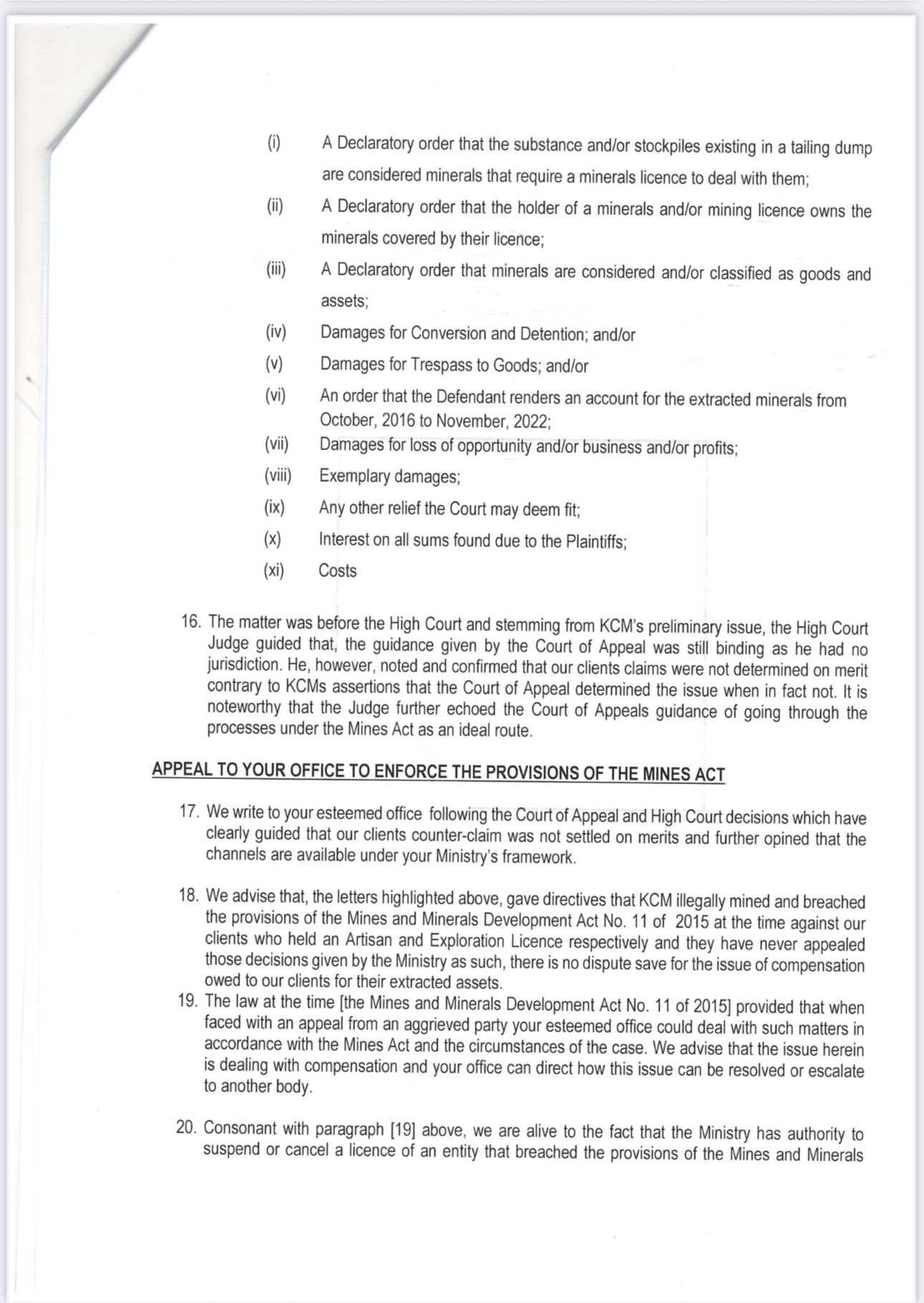 At no point, according to the demand letter filed by CCY Legal Practitioners on behalf of the complainants, has KCM disputed or appealed the Ministry’s findings.